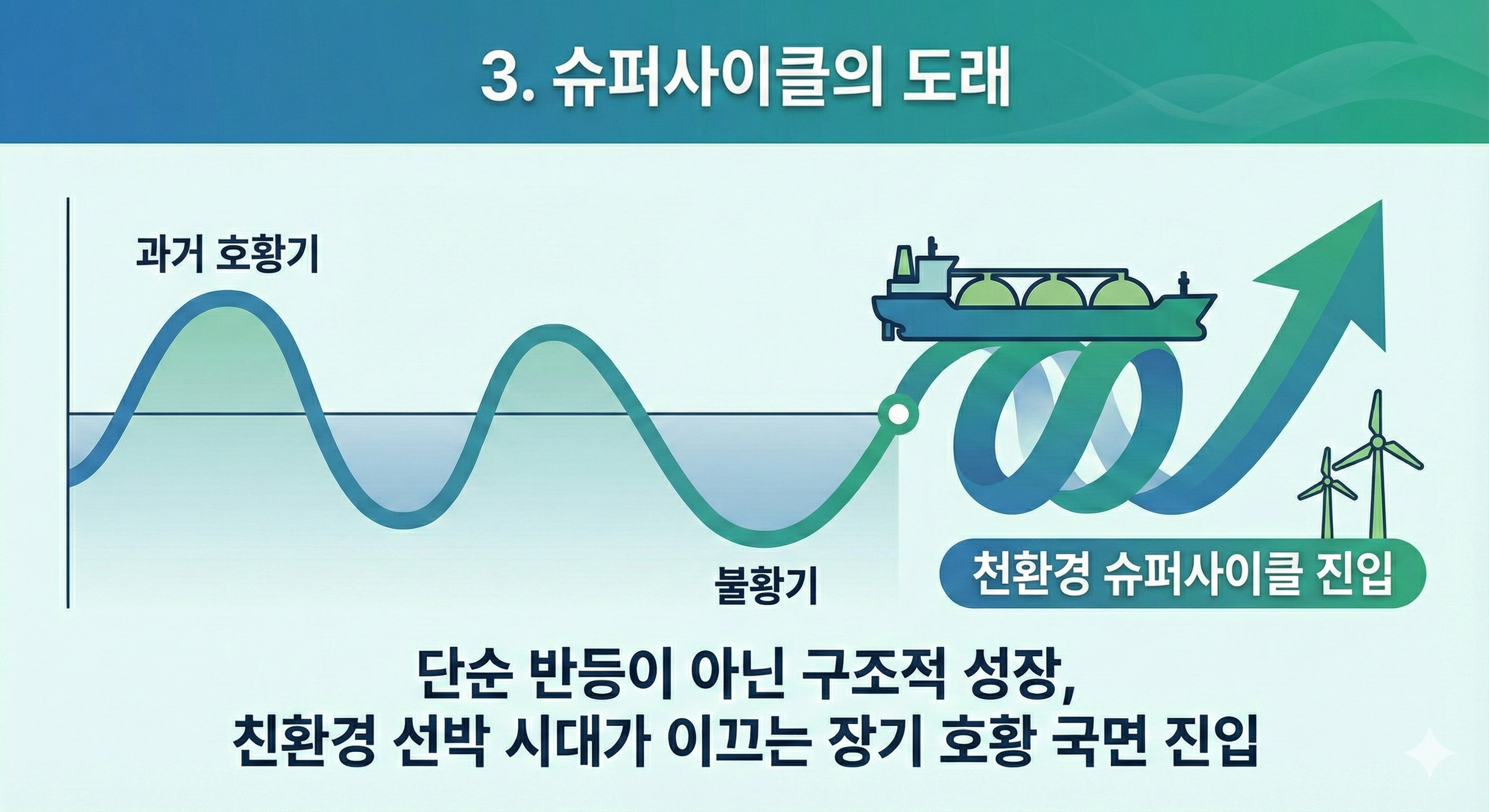 많은 투자자가 반도체와 배터리에 열광할 때, 조용하지만 아주 거대한 파도가 밀려오고 있습니다. 바로 '조선업 슈퍼사이클(Super Cycle)'입니다. 이번 사이클은 단순히 경기가 좋아져서 배를 많이 만드는 과거의 패턴과는 차원이 다릅니다. '환경 규제'라는 거부할 수 없는 시대적 흐름이 강제하는 구조적 성장기이기 때문입니다.